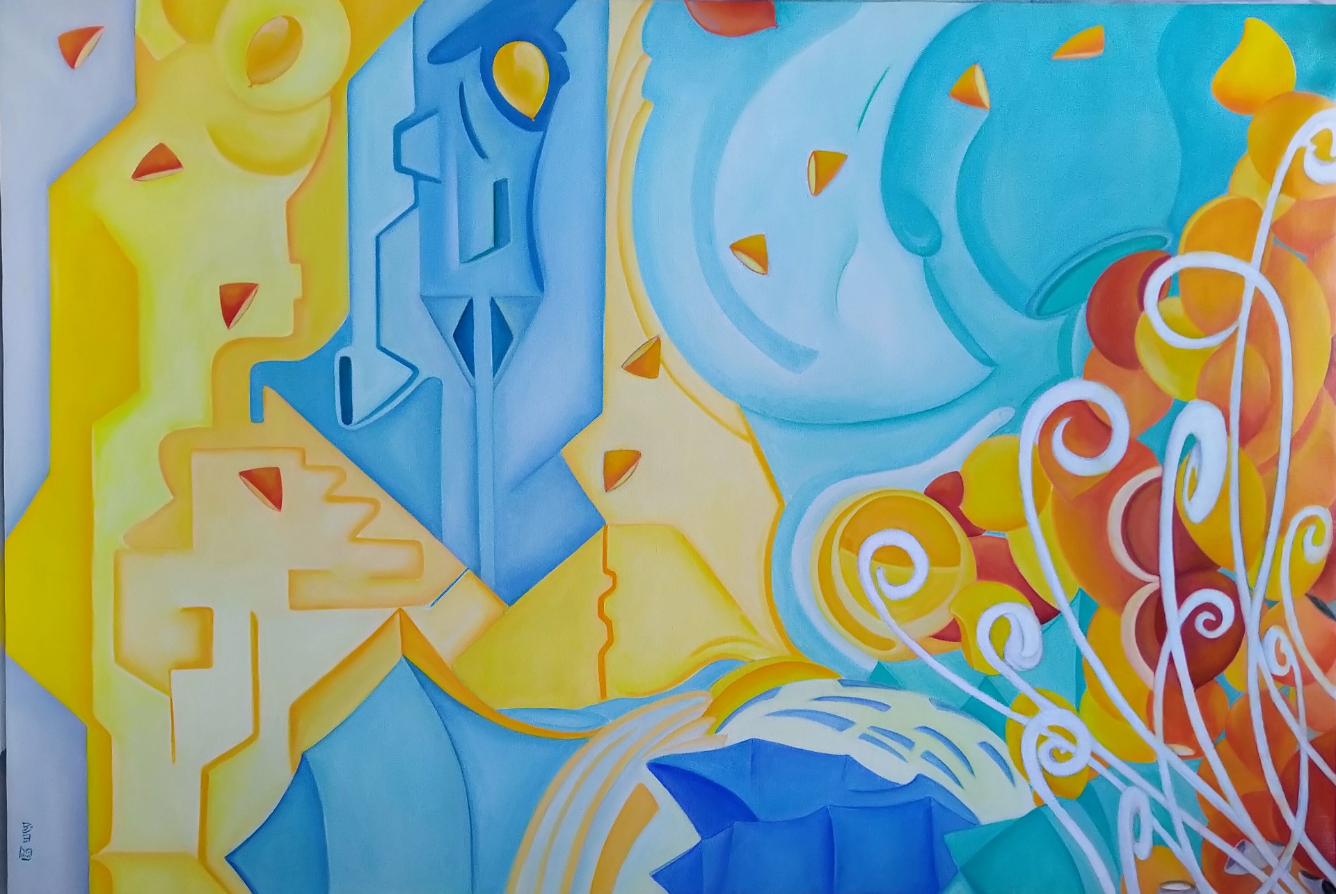 Oils&fluorescent acrylics on linen, 67.5x54cm.